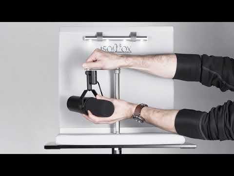 ISOVOX Horizontal Mic Mount is compatible with SM7B, RE20 and other Podcast, Broadcast, Shotgun and Handheld style mics or similar mounted microphones inside the ISOVOX Vocal Booth.